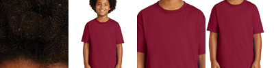 Youth Size, 4.5 oz., pre-shrunk 100% Combed Ringspun Cotton, Shoulder-to-shoulder taping Double-needle stitching throughout Tubular construction