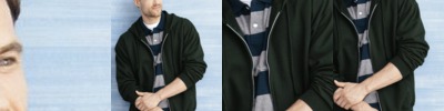 50\50 cotton/polyester. Spandex blend rib collar, cuffs and waistband. Coverstitched neckline and armholes. Patented, low pill, high-stitch density fleece.