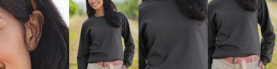 - Fabric laundered, 4.3 oz., 100% combed ringspun cotton, 32 singles